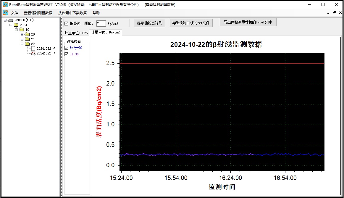 4、测量单位: CPS,CPM, Bq/cm2